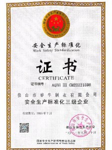 • 安全生產標準化三級企業 證書