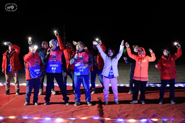第三天再度起航,團隊里每一個人雖然很痛很苦,且又面對跳繩挑戰,每個人都已經身心疲憊了,但是都毫無退縮,跨過一條沙漠里很珍貴而又美麗的小溪,它很淺,但是很珍貴,仿佛一個人的光很微弱,但是匯聚在一起便成流星閃亮天空。夜晚的篝火晚會更是溫暖了大家的心,歡呼著……