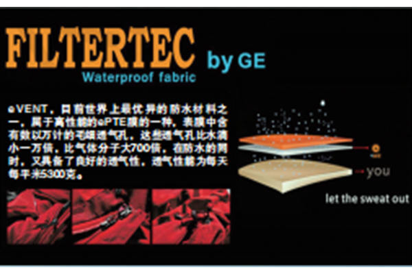 則EVENT使用了GORE-TEX面料的品牌沖鋒衣售價(jià)高達(dá)幾千上萬元,一般的戶外愛好者常常只能是“望衣興嘆”。而誕生比GORE-TEX略晚的EVENT面料的性價(jià)比似乎要高一些,兩者都被稱為頂級(jí)沖鋒衣的面料。EVENT技術(shù)上使用了與GORE-TEX完全不同的思路,它使用一種全新的EPTFE織物(不是覆膜)工藝,這種織物具有極其穩(wěn)定的化學(xué)性能,適用的溫度范圍更廣,而且耐老化。面料層的小孔雖然比EPTFE覆膜的分子透氣孔大,但是依然能夠稱職地將雨水阻隔在面料外部,即使最小的水珠(霧珠)也不能輕易通過。而且擴(kuò)大的透氣孔讓透氣性能幾乎與傳統(tǒng)織物面料沒有差別。