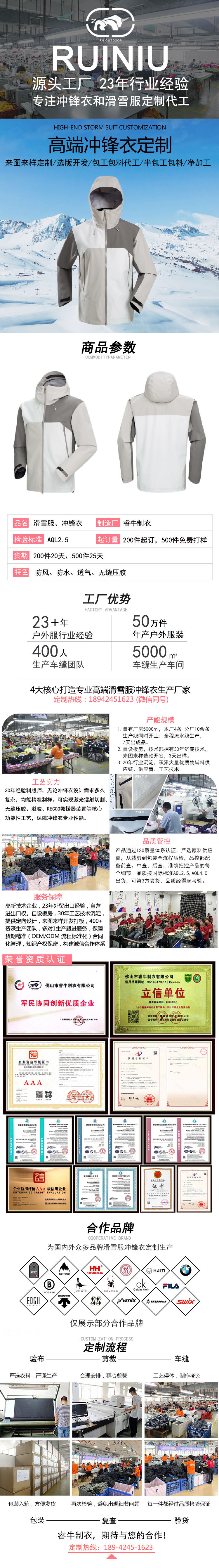佛山?jīng)_鋒衣工廠來圖來樣加工防水壓膠沖鋒衣