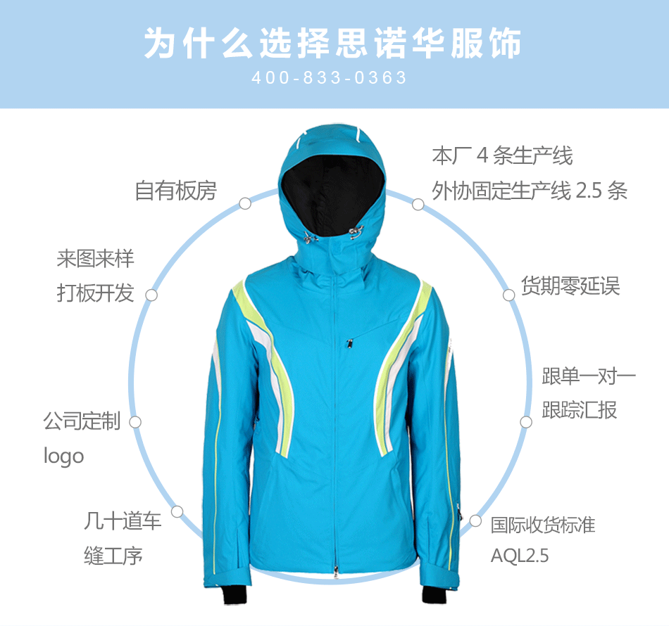 防水拉鏈采用無(wú)縫壓膠防水拉鏈激光熱封工藝貼合,面料采用進(jìn)口防水透氣涂層膜,使防水透氣膜與面料完美結(jié)合。可根據(jù)客戶需求生產(chǎn)加工沖鋒衣。